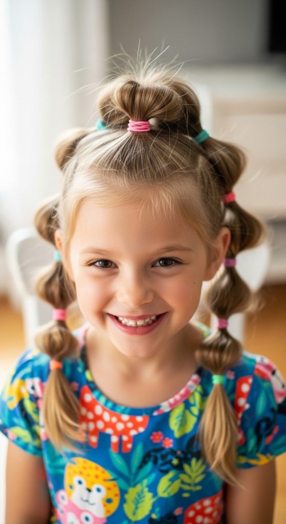 Use matching hair elastics for a seamless look. Spritz with hairspray to reduce flyaways. Ideal for playground days or dance classes.