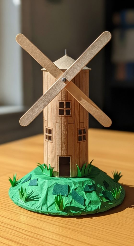Build a working windmill or water wheel using cardboard, straws, and sticks to demonstrate renewable energy concepts.
