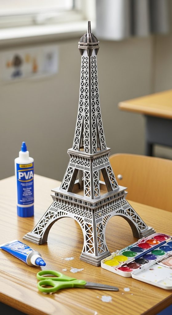 Recreate landmarks like the Eiffel Tower, Pyramids, or Taj Mahal using cardboard, popsicle sticks, or clay.