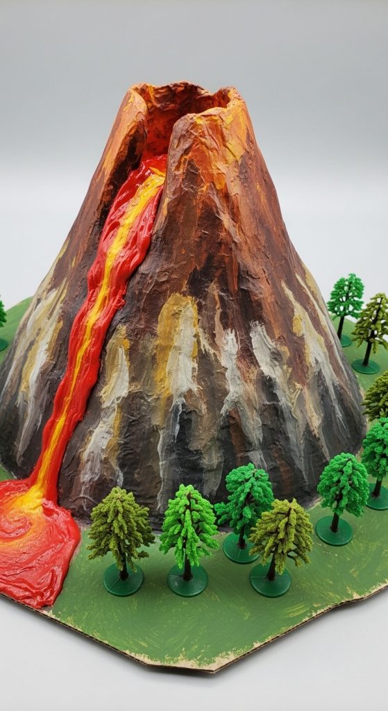 Build a paper-mâché volcano, paint it realistically, and use baking soda and vinegar for a dramatic eruption.