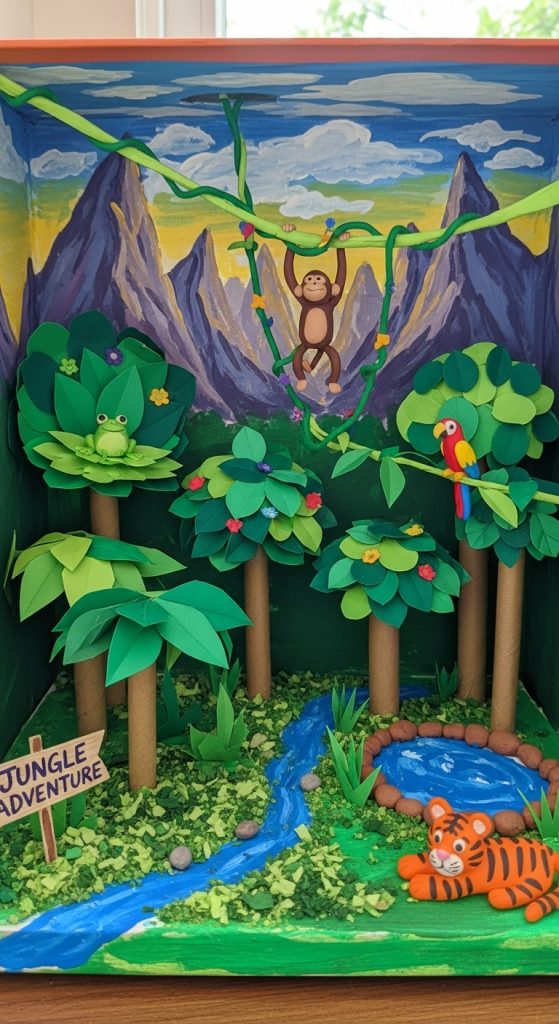 Make a shoebox diorama showing forests, deserts, or oceans with clay animals and paper trees. It’s both fun and informative.