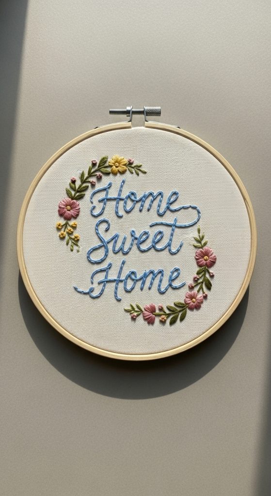 Embroider or paint motivational quotes, names, or special dates inside the hoop to personalize your wall art.