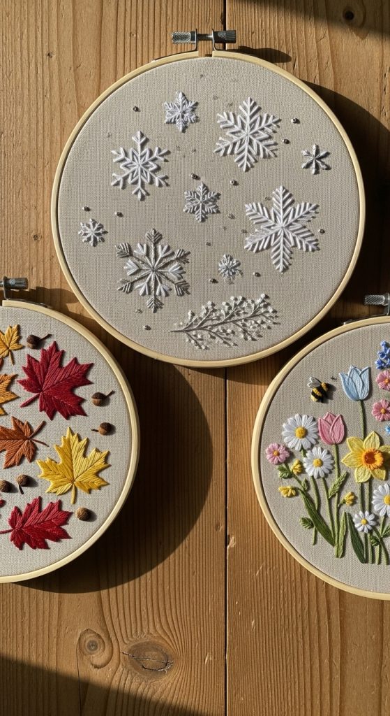 Decorate hoops with themes for different seasons—pumpkins and leaves for autumn, snowflakes for winter, flowers for spring.