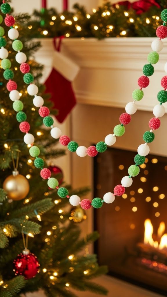 Thread gumdrops onto string, ribbon, or fishing line to create a candy-themed garland. Alternate colors in patterns like red-green-white or rainbow stripes. Hang the garland on a Christmas tree, across a mantel, on classroom bulletin boards, or around door frames. Kids love making this garland because it’s easy, colorful, and festive.