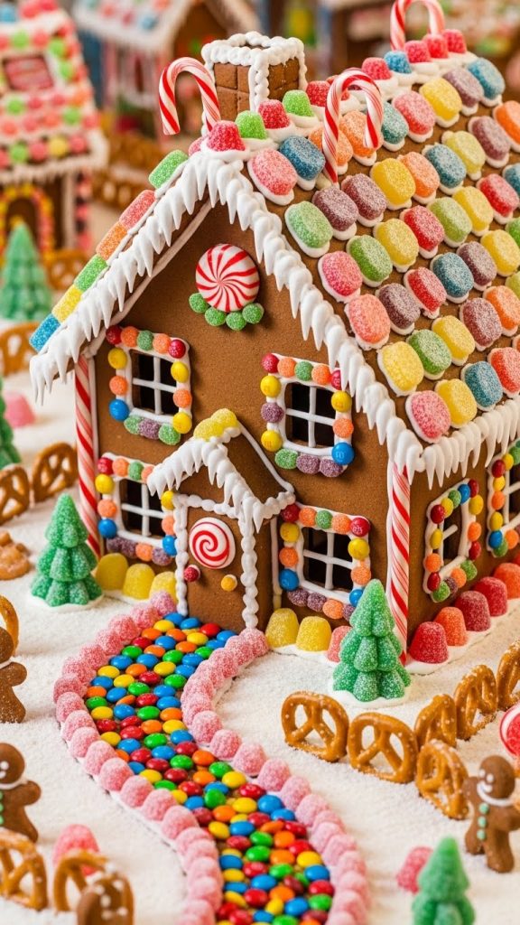 Use gumdrops to decorate gingerbread houses, gingerbread villages, or cardboard craft houses. Add gumdrops along roofs, windows, pathways, fences, and trees. Create gumdrop “bushes” using three drops together. These sweet accents make gingerbread scenes look magical and professional.