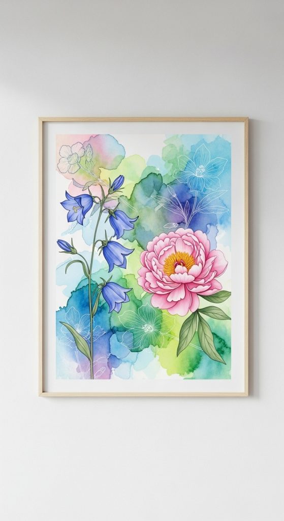 Experiment with abstract patterns, landscapes, or floral designs to create your own wall art. Frame them for a budget-friendly way to decorate your living space.