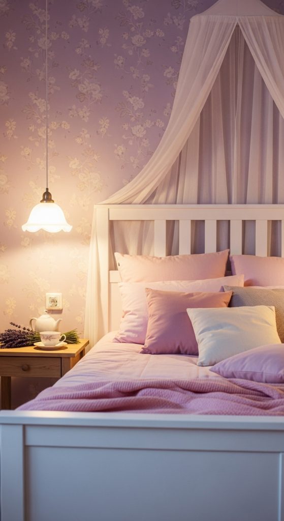 Pastel pink, lavender, or mint green wallpapers create a soft, romantic atmosphere that’s ideal for bedrooms.