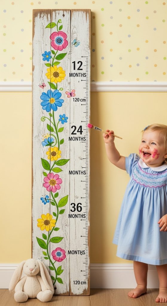 Move beyond pencil marks on doorframes with a decorative growth tracker. Use reclaimed wood or canvas for an eco-friendly version of this practical keepsake craft.