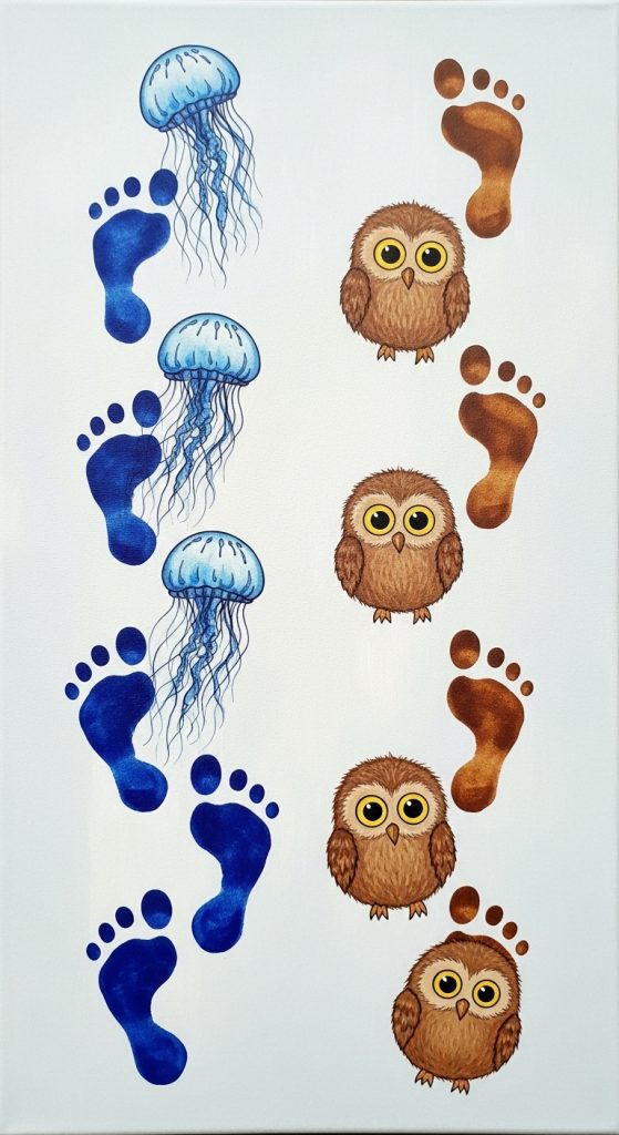 Turn messy footprint sessions into creative animal scenes. This craft encourages imaginative storytelling while capturing exact foot proportions at different ages.