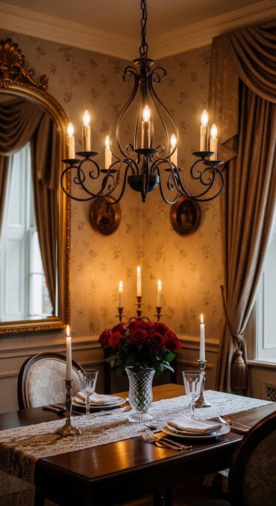 Designed to mimic candlelit fixtures of the past, these chandeliers bring romance and warmth to dining rooms and living areas.
